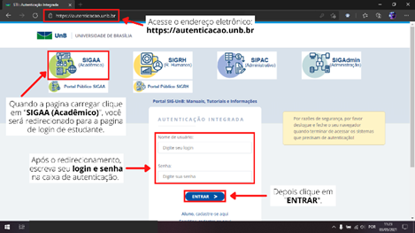 1º PASSO: Acesse o endereço eletrônico: https://autenticacao.unb.br
